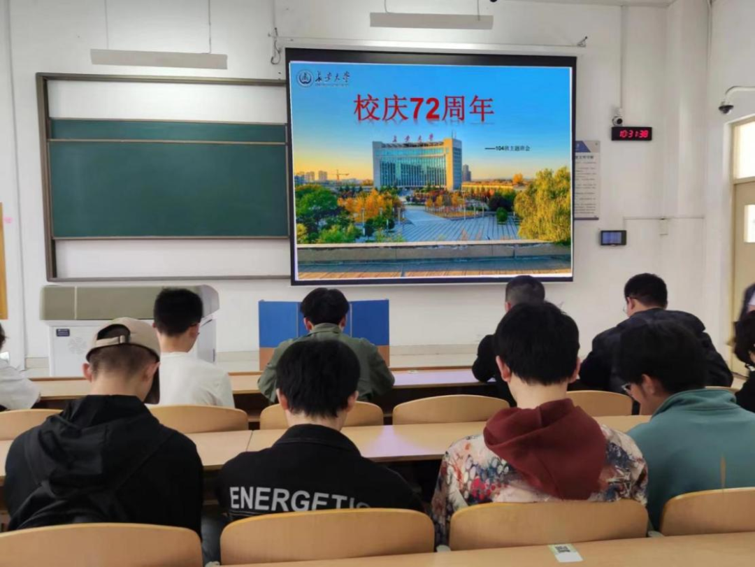 活动伊始,班长马友琛组织班级全体同学们观看永利集团校庆宣传片,回望永利集团栉风沐雨七十载的光辉历程,使同学们对学校的校史校情有了更加深入的了解,增强了同学们的爱校荣校意识。