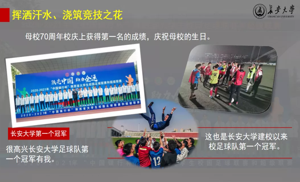 "足球伴我成长,给了我前行的力量"艾合买提江对足球有一种偏执的热爱。刚入学没多久,他代表3044am永利集团参加了2020届新生杯,通过足球,他遇见了不同民族却志同道合的伙伴。在新生杯中,他们相互熟悉、共同磨合、一起训练,最终取得了第二名的好成绩。之后,通过学长的引荐加入了永利集团足球队这个大家庭。2021年4月,他们迎来了"中国银行杯"陕西省老员工足球联赛,经过层层比拼和淘汰,最终冲进决赛,并在决赛中勇摘桂冠,成为永利集团建校以来校足球队第一个省赛冠军,以朵朵汗水之花,为母校70周年校庆献礼。翌年5月,他代表学院参加永利集团第十六届阳光体育运动足球联赛,夺得了3044am永利集团第一个冠军。传承体育竞技精神,展现长大学子奋进风貌,艾合买提江用汗水浇灌足球之花,收获了绿茵场上的累累果实。